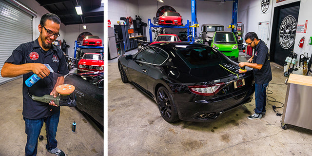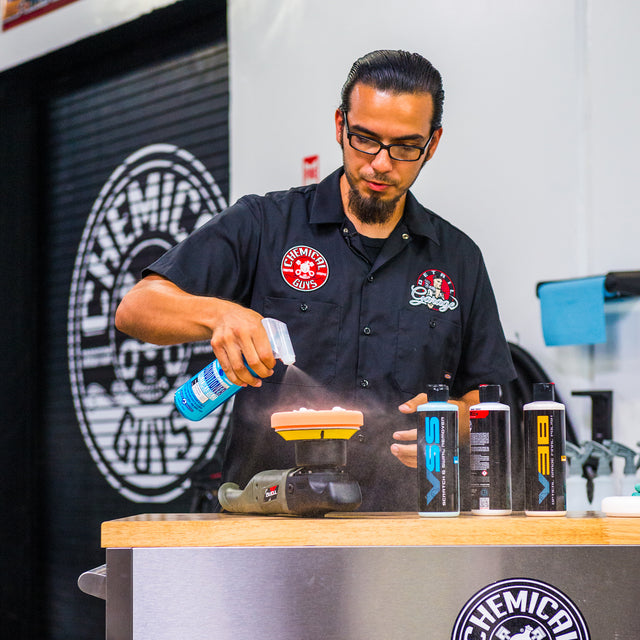 - Place 5 - 6 dots of your favorite Chemical Guys compound or polish across the buffing pad.