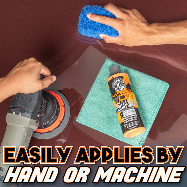 Provides excellent shine. Used the BLACK HEX-LOGIC QUANTUM FINISHING PAD to evenly apply the wax with the TORQX RANDOM ORBITAL POLISHER. Then removed the residue with the BLACK OPTICS MICROFIBER POLISHING PAD.