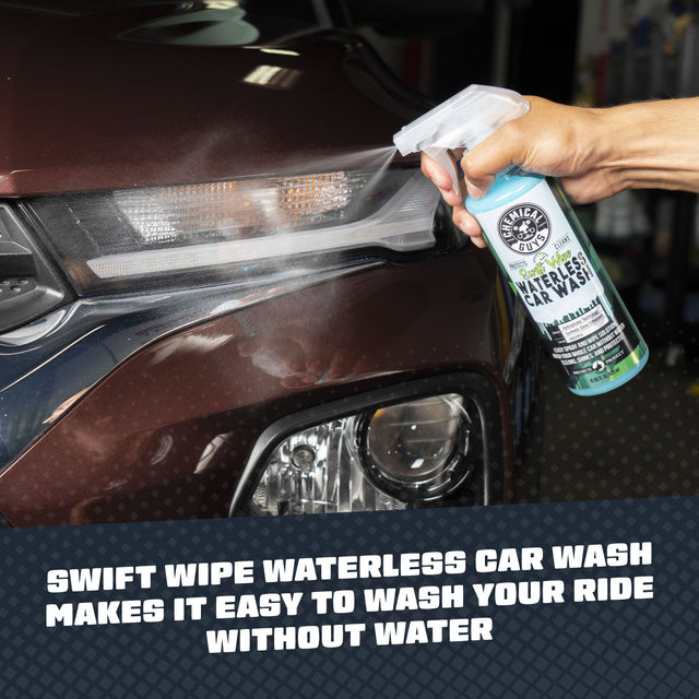 Swift Wipe and Sticky Citrus work together to help you tackle grime and brake dust with ease, no hose or bucket required. Swift Wipe lifts dirt and dust safely from paint, glass, and more, while Sticky Citrus breaks down stubborn brake dust and heavy grime so you can wipe your ride clean anytime, anywhere.