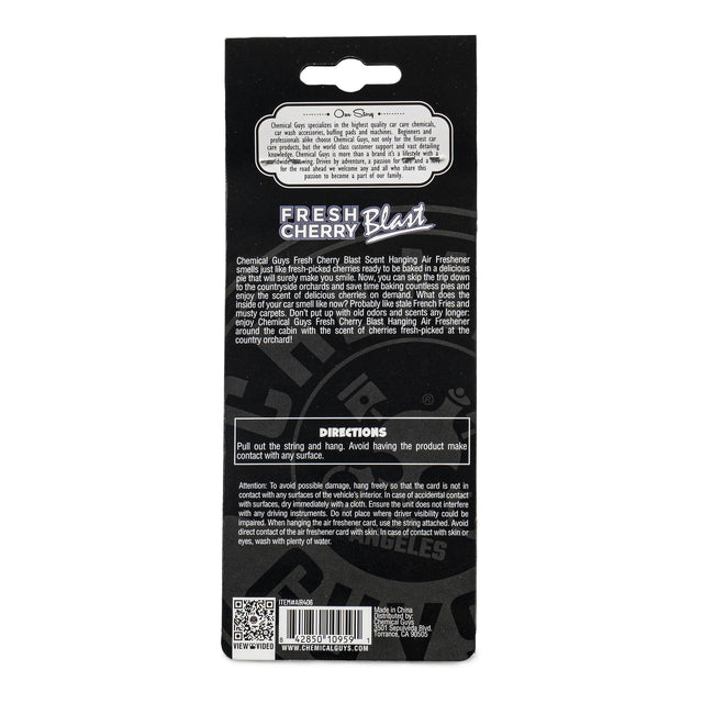 Turn every drive into a delightful journey with our Fresh Cherry Blast Hanging Air Freshener 3-Pack. Embrace the sweet and tangy aroma of ripe cherries that instantly refresh your car interior. Whether commuting to work or embarking on a road trip, let the deep and indulgent scent uplift your mood and create a pleasant driving atmosphere.