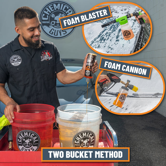 Hybrid V07 uses proprietary gloss enhancers to maximize shine and optical clarity while maintaining sealants, waxes, and coatings. Hybrid V07 Soap produces thick suds and foam that carry dirt and contamination away without any harsh rubbing, scrubbing, or scratching. Hybrid V07 Car Wash Soap is pH-balanced, and will not spot or stain even when used in direct sunlight.