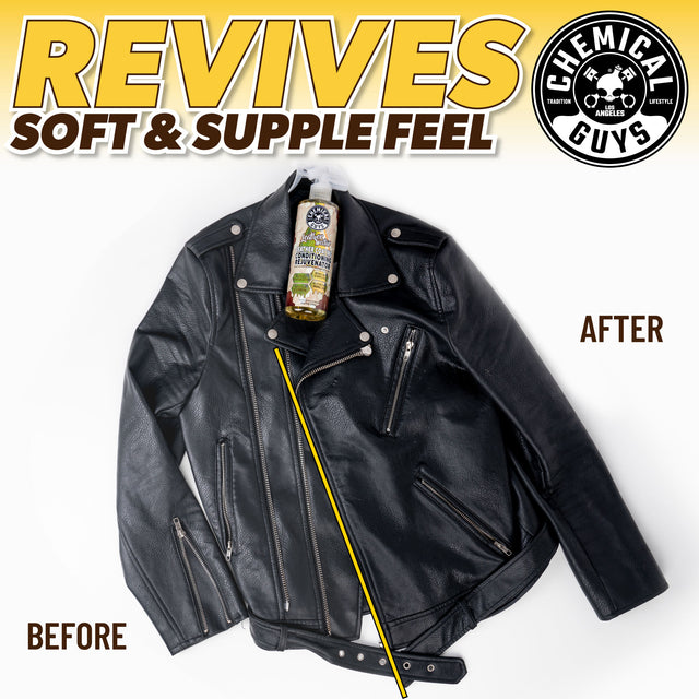 Leather Nectar Leather Coating Conditioning Rejuvenator works to revitalize many colors and types of leather products such as boots, shoes, jackets, purses, handbags, furniture and upholstery, car interiors, motorcycle seats, and more. Use Leather Nectar to help moisturize and soften both old and new leather furniture, leather car interiors, and help promote flexibility on your favorite leather belt or leather shoes. Leather Nectar delivers the deep hydration and conditioning properties you have been looking for to restore the original look of all your leather goods. When your leather needs the ultimate restoring nourisher, use Chemical Guys Leather Nectar Leather Coating Conditioning Rejuvenator to restore a soft and supple feel with a rich and elegant look!