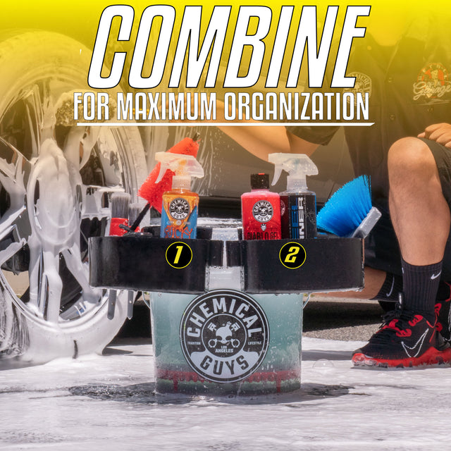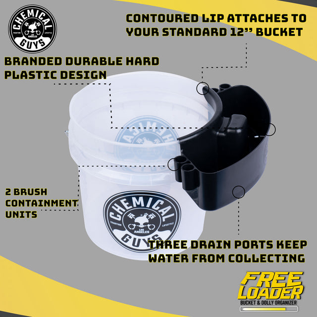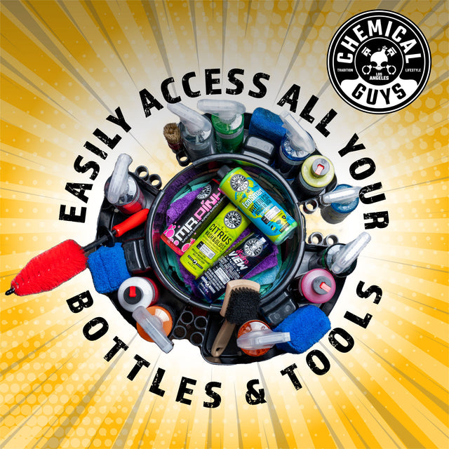 Ever misplace a bottle, brush, towel, or mitt right in the middle of a detail? With the Freeloader, your arsenal stays organized and ready at all times. Designed to fit your standard 12” diameter bucket, it keeps your chemicals, brushes, towels, and applicators all within arm’s reach. Keep one in your garage, in your house, at work, and in the yard to stay organized for any job.