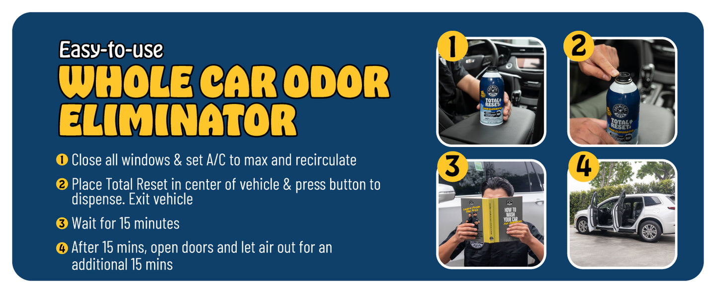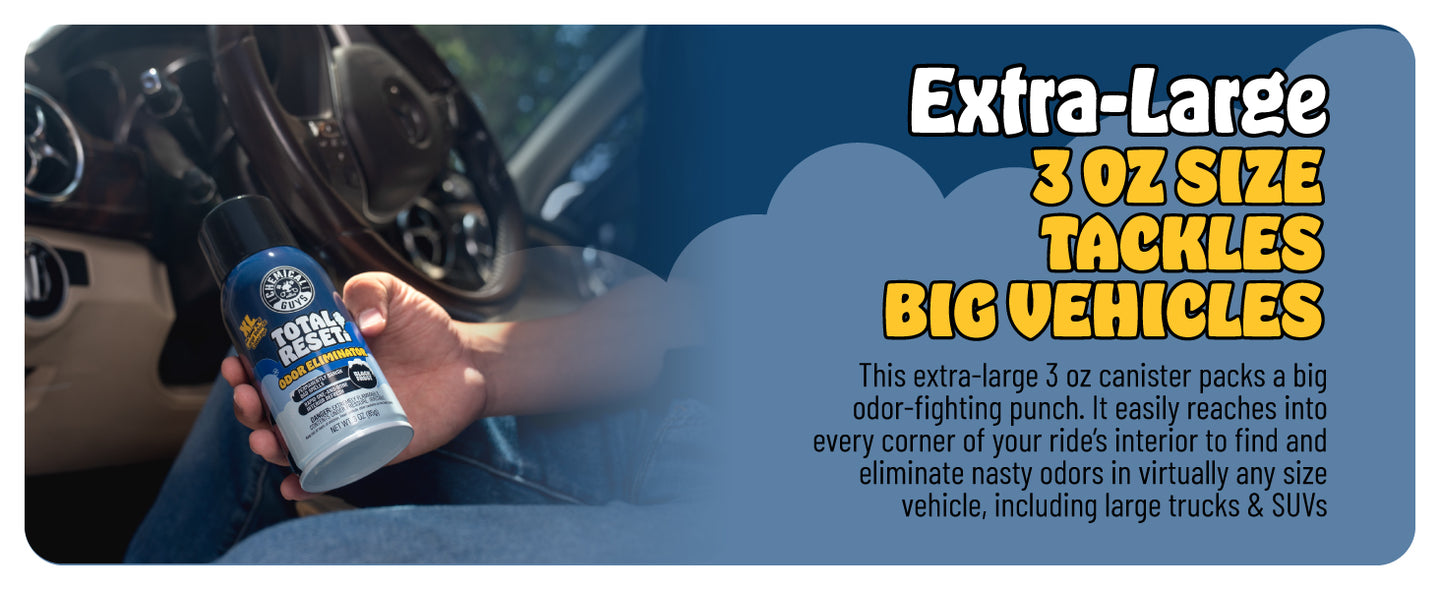 Refresh your ride's interior and destroy nasty smells at their source with this easy-to-use, extra-large, one-and-done 3 oz whole car odor eliminator that’s powerful enough to tackle bigger vehicles, like trucks and SUVs, with just one canister.