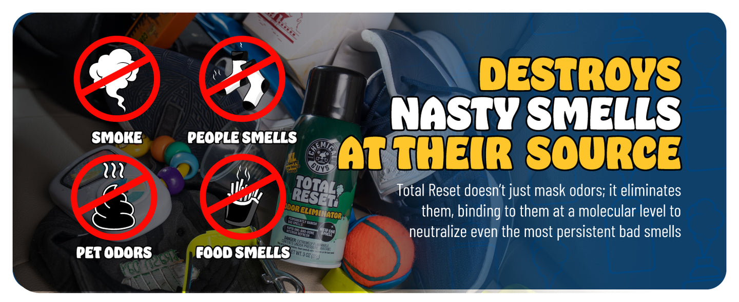 Total Reset’s bad smell-fighting formula binds to odors, eliminating them at a molecular level like they were never even there. It easily neutralizes stubborn odors from pets, food, sports gear, smoke, and more, wiping them out like they never existed.