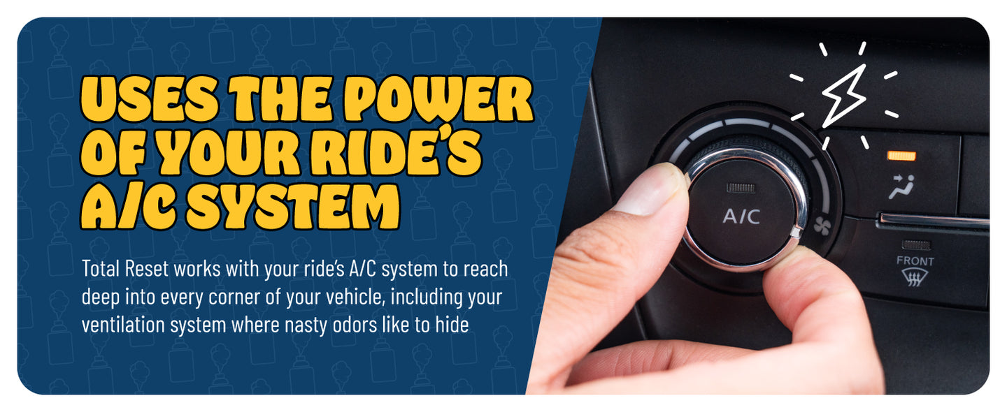 Total Reset harnesses the power of your ride's A/C system to reach deep into vents, carpets, and hidden nooks where foul smells like to hide. This one-use odor eliminator blasts away unpleasant odors wherever they may be hiding, leaving your car, truck, SUV, or RV's interior filled with the invigoratingly fresh, cologne-inspired scent of Black Frost!