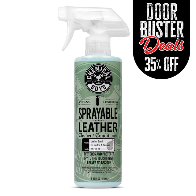 Dirt, oils, and other contaminants from daily driving can stain, dry out, and dull the look of your car’s leather, seemingly adding years to its age. With just a few quick spritzes of Sprayable Leather Cleaner & Conditioner, impurities are lifted from leather pores and easily wiped away in seconds, leaving a clean, like-new surface.