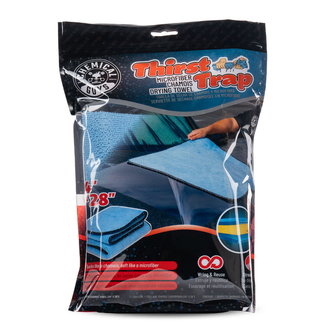 The Thirst Trap™ Microfiber Chamois Shammy Towel is a game-changer in car drying technology. Its innovative blend of chamois absorbency and microfiber softness makes it an effective drying tool, capable of delivering a gentle, efficient dry. Dubbed "Thirst Trap" for its exceptional ability to trap and hold water, this towel ensures a streak-free finish, minimizing water spots and reducing drying time. With its quick-wring design and durable, reusable nature, the Thirst Trap™ offers a superior cleaning experience that streamlines your car care routine.