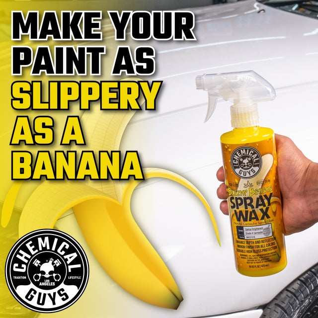With Blazin' Banana, you can achieve a glossy, slick finish that's as quick and easy to use as peeling a banana. Traditional liquid and paste waxes can be messy and take time to spread evenly across paintwork. With Blazin’ Banana, you just spray this durable wax onto the surface for a nice, even coverage every time, then wipe it away to reveal a glossy, slick finish. Get the same protection as traditional paste waxes with much easier application.