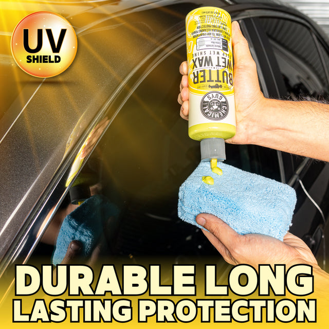 Butter Wet Wax takes everything you know about wax and makes it a fast, fun, and easy experience. The wipe on, wipe off formula shortens work time and produces a streak/residue-free shine in a matter of minutes. With one product, you’ll get easy application, a wax barrier against impurities, and a flawless final appearance.
