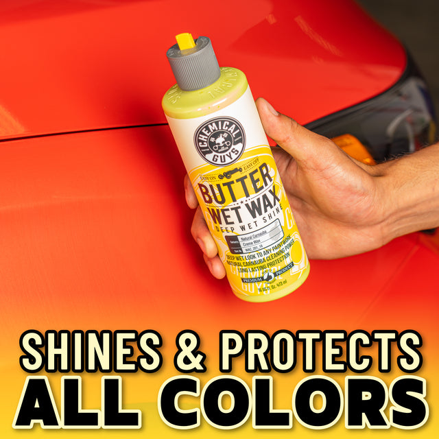 - Among our wax products, Butter Wet Wax is infused with buttery carnauba creme, so it shines and protects any colored painted surface.