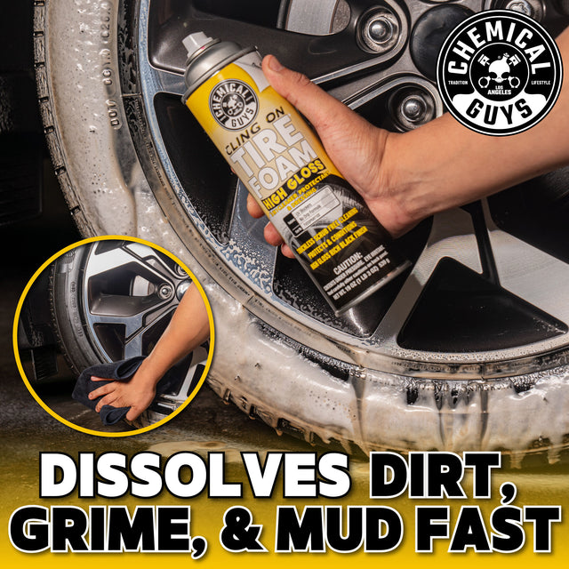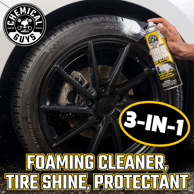 - Among our tire cleaners, Cling On Tire Foam is a deep-cleaning foam that cleans, shines, and protects all at once.