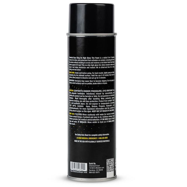 Infused with deep-penetrating conditioners, Cling On Tire Foam rejuvenates dried-out tires, adding a deep black shine, while the UV protectors shield tires from the sun's damaging effects with every touchless application.