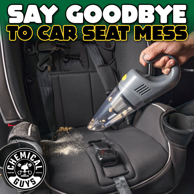 DetailVac comes with a 26” smart-flex connection hose and crevice nozzle tool to focus the suction and get into tough-to-reach spots around the seats and center console. Swap in the brush attachment to pick up stubborn dirt from rugs and upholstery. Plus, the custom accessory kit and easy-carry bag makes it the ultimate portable car interior vacuum that easily cleans up cereal, dust, sand, and other common messes.