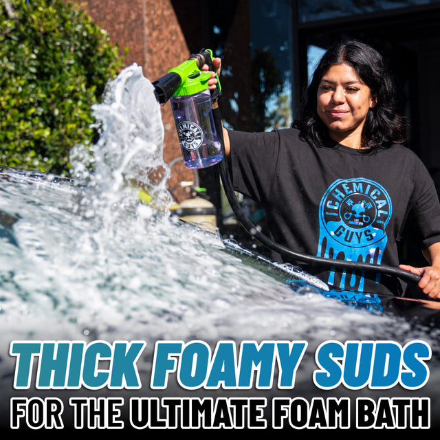 Foams well thru my pressure washer and leaves the car with a nice shine. I find it pricey in the 16 oz container. I will not purchase this product again until they offer it in a more affordable size.