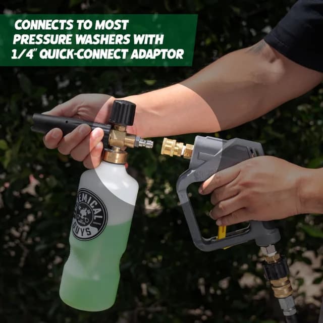 - TORQ Professional Snow Foam Cannon sprays dense foam that clings to paint, encapsulating dirt and grit to lift them away safely helping to prevent swirl marks.