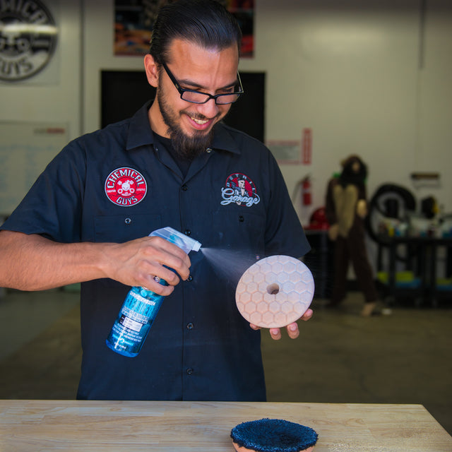 Chemical Guys Polishing Pad Cleaner restores all types of machine polishing pads to brand-new cutting and polishing power. Without proper cleaning, buffing and polishing pads can cake up with dry polish and paint residue. Residue clogs polishing pads, which reduces their cutting ability and causes them to produce sub-par results. No matter the pad, chemical, or machine, use Chemical Guys Polishing Pad Cleaner to remove polish and paint residue, and restore pads to a like-new condition.