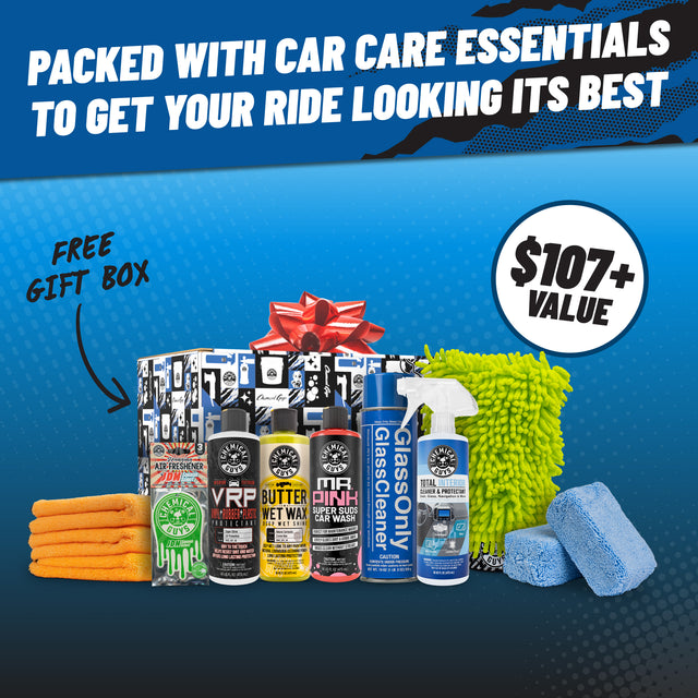 Score over $107 worth of premium Chemical Guys products in one complete kit. Wash and wax your ride, achieve streak-free glass, refresh your interior, and restore and protect trim and tires. Packed with a full set of premium accessories and finished with an exclusive collector’s gift box, this kit has everything you need to keep your car looking its best inside and out.