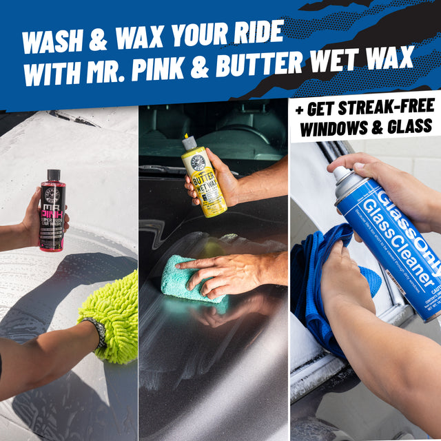 This kit is loaded with value, bringing you over $107 worth of Chemical Guys essentials at a price that makes it easy to upgrade your wash routine. Wash and wax your ride with Mr. Pink and Butter Wet Wax, achieve streak-free glass with Glass Only Glass Cleaner, refresh your interior with Total Interior, and protect trim and tires with VRP. It’s the perfect way to start or expand your cleaning arsenal.