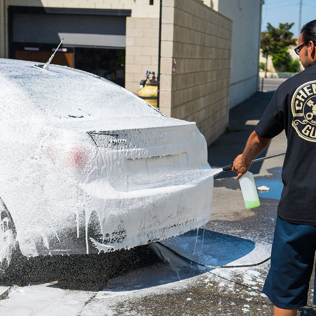 Use Honeydew Snow Foam with a Foam Cannon or Blaster and watch as powerful hypersurfactants cut through dirt and grime, lift them from sensitive automotive paintwork with billions of scrubbing bubbles, then safely guide them off the paint. Plus, Honeydew Snow Foam rinses clean with no residue and contains water softeners to help reduce hard water spots.