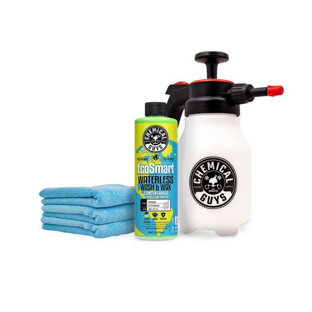 Conserve water while keeping your vehicle clean with the power of an Eco-friendly wash kit. The Mr. Sprayer Waterless Wash Kit has a full-function atomizer and pump sprayer, dual-action waterless car wash & wax, and a set of pro-rated microfiber towels to buff and shine to your heart's content.