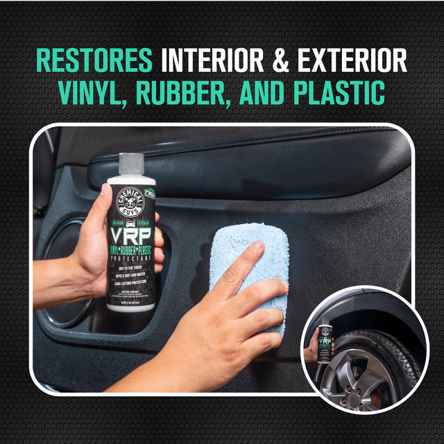 VRP is designed to help rejuvenate, shine, and protect vinyl, rubber, and plastic surfaces. Use it on trim, door panels, tires, and more to leave surfaces with a dry-to-the-touch, non-greasy, glossy finish. VRP also helps protect against drying and discoloration to keep your interior looking its best.