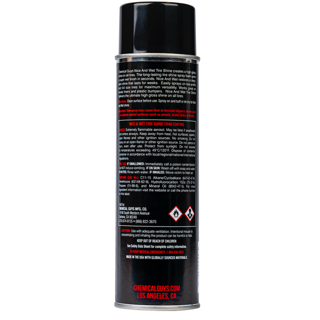 - Among our tire shines, Nice & Wet creates a protective high-gloss shine in one step. Just spray and walk away or wipe it away.