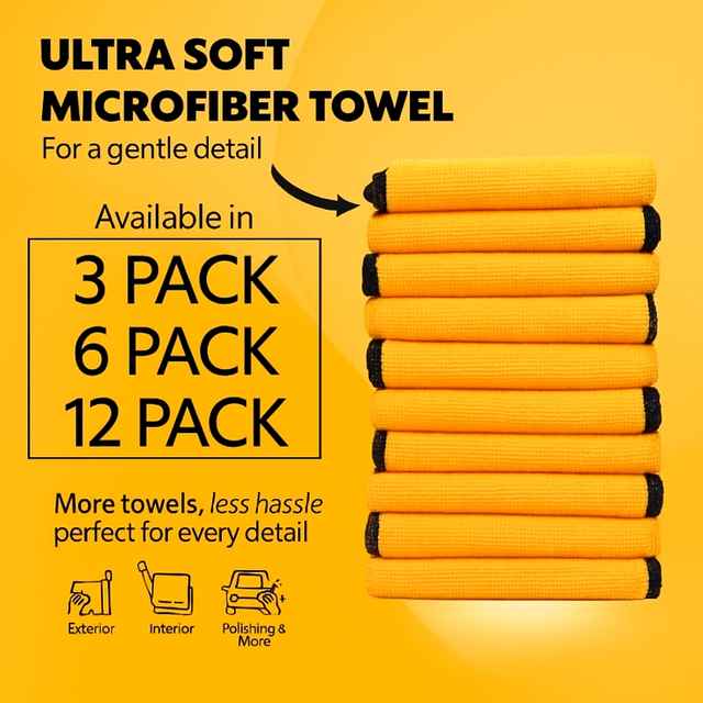 Crafted from ultra-soft microfiber with silky-banded edges, these towels are designed to be gentle on your vehicle's paintwork, ensuring a scratch-free and swirl-free finish. Their lint-free and streak-free properties make them perfect for pristine shine on glass, paint, and other surfaces. Highly absorbent and efficient, these towels quickly soak moisture, making drying, buffing, and detailing a breeze.