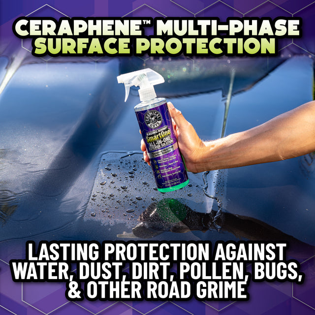 Ceraphene™’s proprietary surface protection technology built into the formula leaves behind gloss, hydrophobic water behavior, and a slick protective finish.