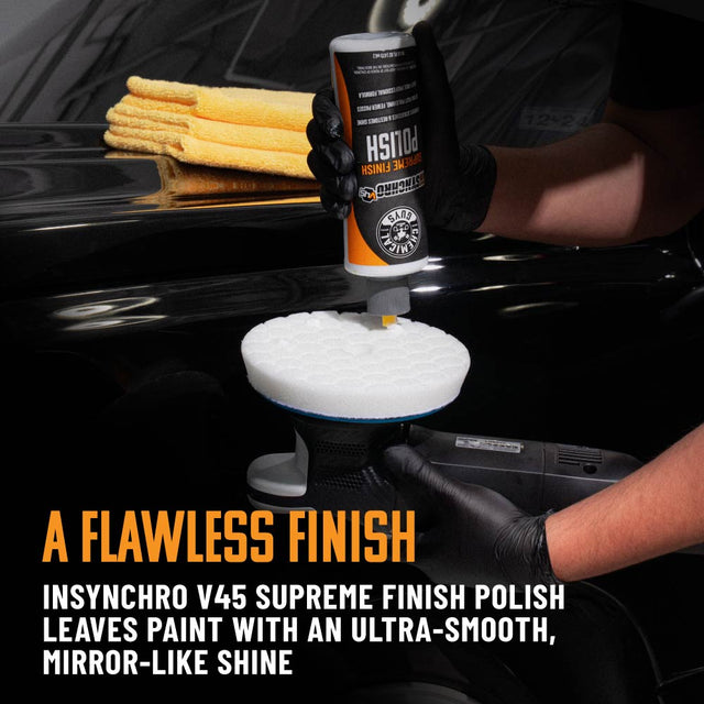 Once the heavy lifting is done, the V45 Supreme Finish Polish delivers the final pop. This polish refines your paint to a high-clarity, mirror-like gloss that instantly transforms your vehicle's appearance. Expect a smooth wipe-off, no chalky residue, and a finish that practically glows—perfect for sealing, ceramic coating, or simply standing back and admiring your handiwork.