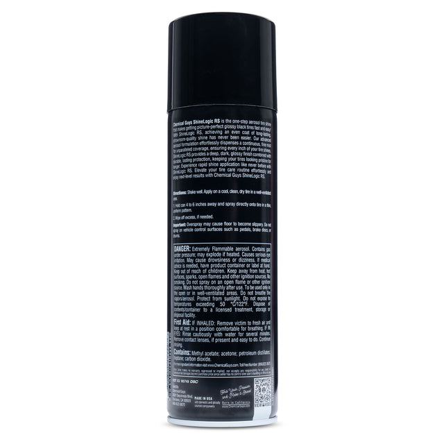 Whether you're gearing up for a car show or want to keep your ride looking sharp, Chemical Guys ShineLogic™ Tire Shine is your go-to choice. Choose the aerosol format for fast, easy Rapid Shine application and hard-to-reach areas or the trigger spray for precise control and detailed work. Both formats deliver a durable, lasting shine while protecting from the elements. When only the deepest of shines will do, apply and enjoy the results. Transform your tire care routine and experience unparalleled shine and protection with Chemical Guys ShineLogic™ and ShineLogic™ RS.