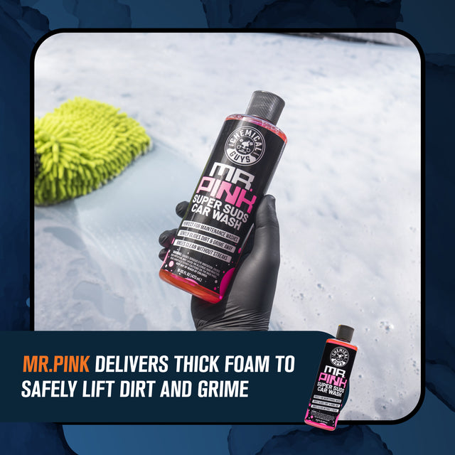 Make every wash easier and more rewarding with a simple three-step routine that cleans, dries, and boosts shine in one go. Start with Mr. Pink Car Wash to create thick, slick foam that safely lifts dirt and grime from paint, wheels, and trim. Rinse clean, then spray After Wash onto wet or damp surfaces to help accelerate drying while leaving behind a smooth, glossy finish. Follow with Little Megalodon to absorb water quickly and finish surfaces clean and streak-free after every wash.