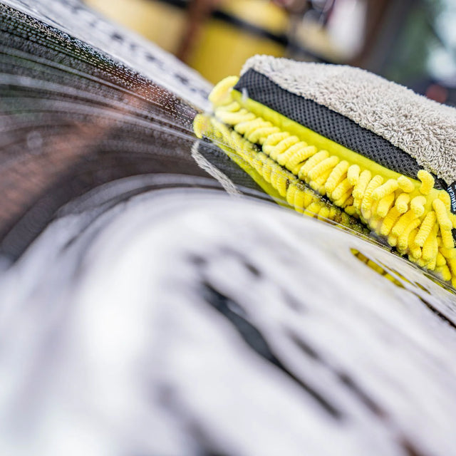 The 3-Way Mitt uses plush microfiber chenille noodles to gently pull away dirt and abrasive grime from curves and contours. Flip the mitt over to the short-pile microfiber weave and gently rub heavy filth off paintwork, metal, glass, and durable plastic surfaces. For tougher tasks like dried bugs and bird droppings, simply turn the mitt sideways and gently scrub away stuck-on debris with its powerful scrubbing mesh.