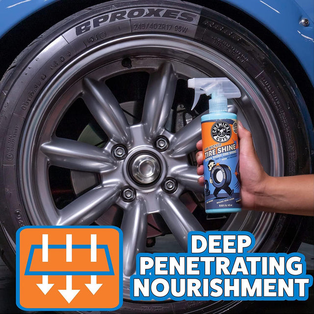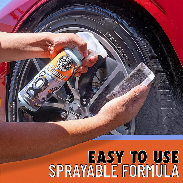 • Among our tire shires, Tire Kicker is a sprayable formula that achieves an extra shiny finish.