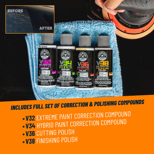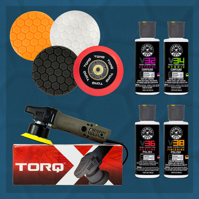 The TORQX kit ships with the entire range of the V Line series of compounds and polishes and three Hex Logic Pads. With the V-Line, professional and enthusiast detailers have access to heavy compounds for removing deep defects like scratches and swirl marks, and lighter polishes to restore pure reflection and glossy depth for unbelievably-shiny paint. The TORQX Kit comes with the most popular Hex-Logic Quantum pads used for full polishing detail jobs. Choose between the fan-favorite cutting, polishing, and finishing pads for the best result on any paint finish.