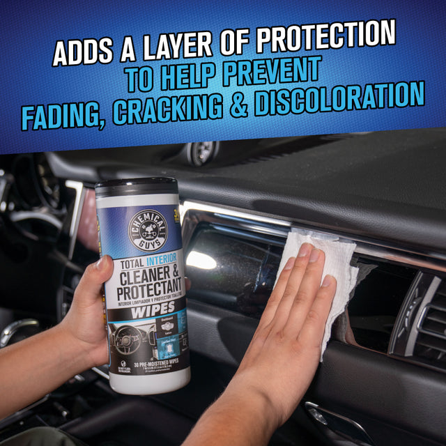 Total Interior Wipes leave surfaces with a crisp, original look finish that’s not greasy or shiny. Beyond making your interior look great, these wipes also add a layer of protection against harmful UV rays, helping prevent future damage from sun exposure.