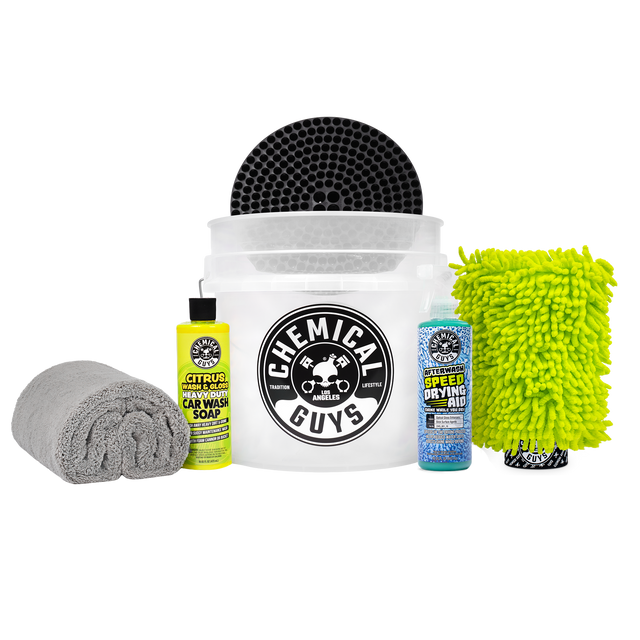 Get everything you need for a safe, swirl-free wash with the Chemical Guys Wash & Dry Starter Kit—the perfect all-in-one solution for beginners and enthusiasts who want professional results at home. This complete car wash kit combines the high-foaming cleaning power of Citrus Wash & Gloss with the smart filtration of the Cyclone Dirt Trap and the durability of the Heavy Duty Ultra Clear Detailing Bucket to keep dirt away from your paint. After rinsing, speed up drying and boost shine with After Wash Speed Drying Aid while the ultra-plush Woolly Mammoth Microfiber Drying Towel absorbs water fast without scratching. The soft Chenille Wash Mitt gently lifts and traps grime for a safer wash every time. Whether you’re maintaining a daily driver or detailing a weekend show car, this wash and dry kit delivers the tools you need for a faster, safer, and glossier finish.