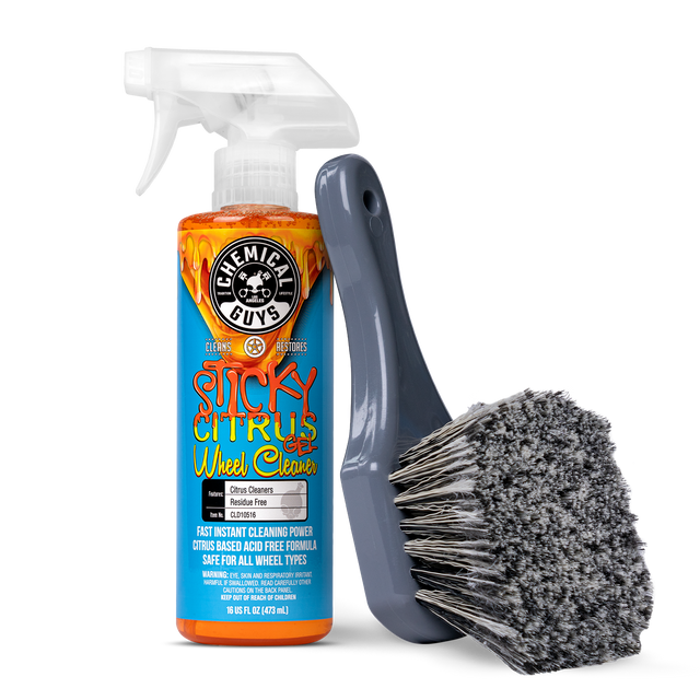 Get a safer, deeper clean with the Chemical Guys Wheel Cleaning Kit, a simple yet powerful combo designed to break down brake dust, road grime, and stubborn buildup on all wheel finishes. Sticky Citrus Wheel Cleaner Gel clings to surfaces for extended dwell time, penetrating and loosening contaminants without harsh acids, while the Wheel Works Medium Duty Wheel & Body Brush agitates dirt from spokes, barrels, and tight areas without scratching. Bundled together, this duo delivers a streamlined clean-and-agitate process that maximizes results with minimal effort, giving you brighter, cleaner wheels in less time. If you want an easy, effective way to maintain showroom-level wheels, this kit is an essential addition to your detailing arsenal.