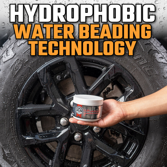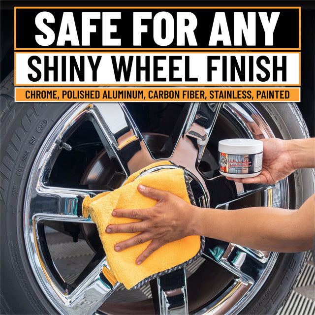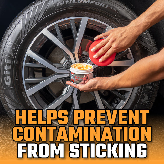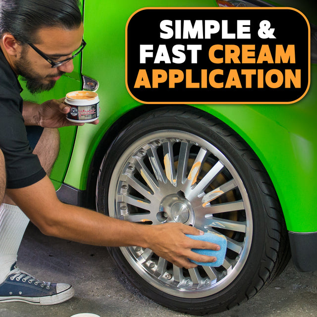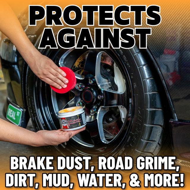 Hard braking results in burnt carbon and steel particles all over wheels and rims. This abrasive brake dust is not only ugly and difficult to clean; it’s corrosive. Wheel Guard is a full-synthetic acrylic formula that bonds directly into the pores of painted and polished metal surfaces, protecting them from the environment so contamination cannot stick to the wheel.