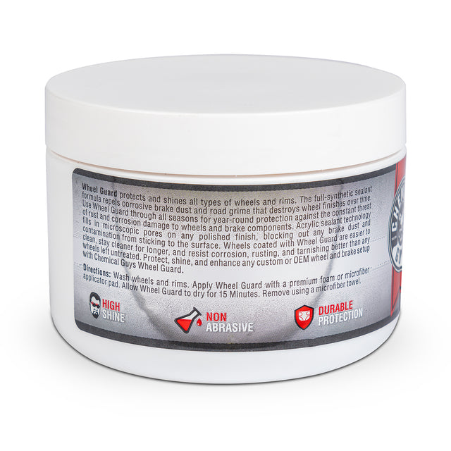 Wheel Guard enhances shine by preventing corrosion that dulls shine and wrapping wheels in a glossy high-shine acrylic synthetic wax. Optical select gloss enhancers fill minor imperfections and make any wheel finish look extra glossy, wet, and shiny. The durable wax coating repels contamination, which makes it easier to clean away any dirt and filth during any regular cleaning afterwards.