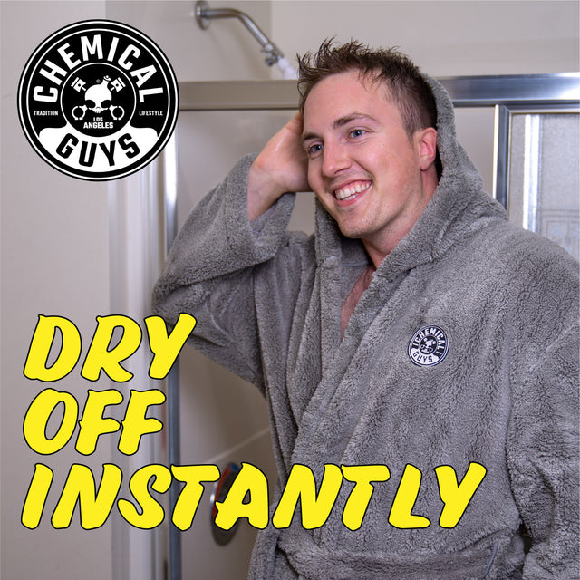 If you can’t get enough of your ultra absorbent Chemical Guys Woolly Mammoth Drying Towel and always wished you could wrap yourself in its plush pile, then you’re going to love the Woolly Mammoth Ultra Plush Microfiber Bathrobe - the most comfortable bathrobe you’ll ever wear! Made of premium, high pile microfiber, this extra warm, super soft robe will leave you reeling in relaxation and wishing you never have to take off your new favorite piece of clothing!