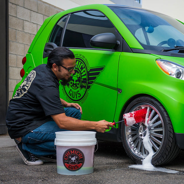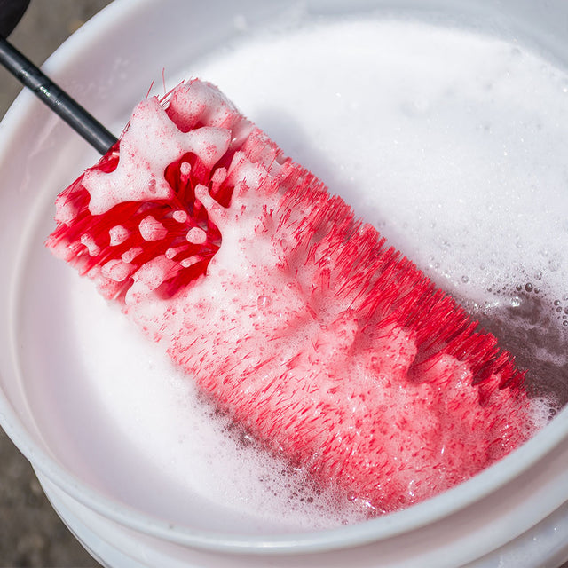 The innovative Red Rocket Brush uses a unique flexible spine that allows you to clean even the most inconvenient areas. Simply bend the brush to the desired angle, or insert into any small space and let the brush flex and conform to scrub 100% of the surface. Use the 9” brush on wheels, rims, brakes, and the smaller 5.5” on grilles, vents, exhaust pipes, and more.