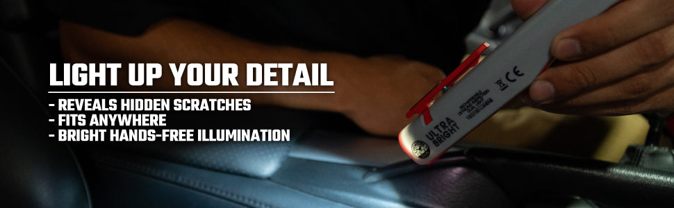 Think you have the perfect polish? Think again! Small scratches and surface imperfections aren’t visible in plain sight or even strong garage light, but ruin the finish of a fresh polishing job. The Ultra Bright reveals hidden scratches, swirls, and other paint imperfections when polishing, so your paint is truly perfect. After your polish, use it to effortlessly light up foot wells, engine bays, under seats, trunks, wheel wells, and cracks and crevices for the ultimate interior and exterior detail!