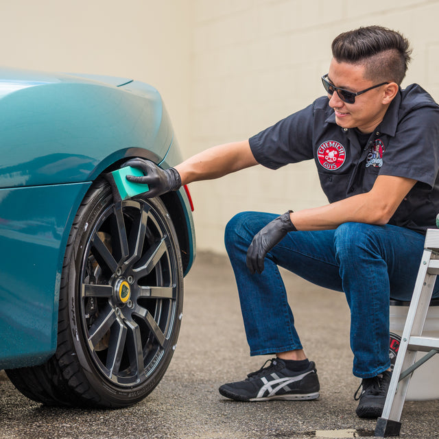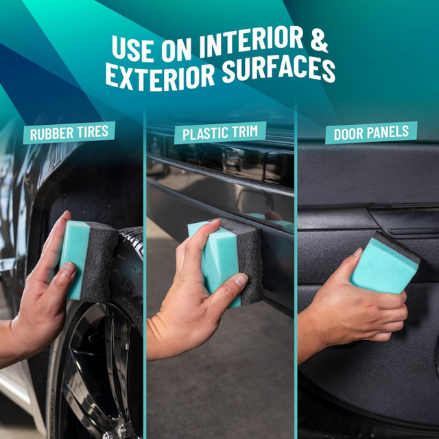 Use the Wonder Wave to spread a thin, even layer of your favorite Chemical Guys tire shine or dressing on rubber tires, plastic trim, vinyl door panels, and leather upholstery. The dense foam holds tight to spray dressings and creams, preventing messy drips from running over the surface while you work.
